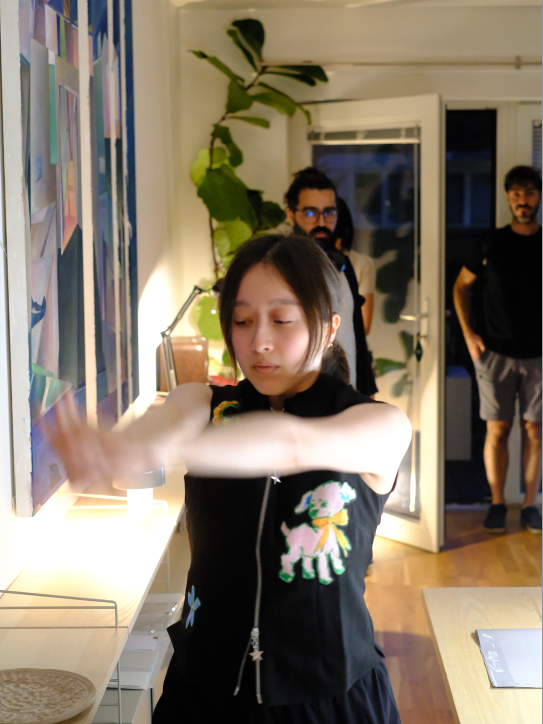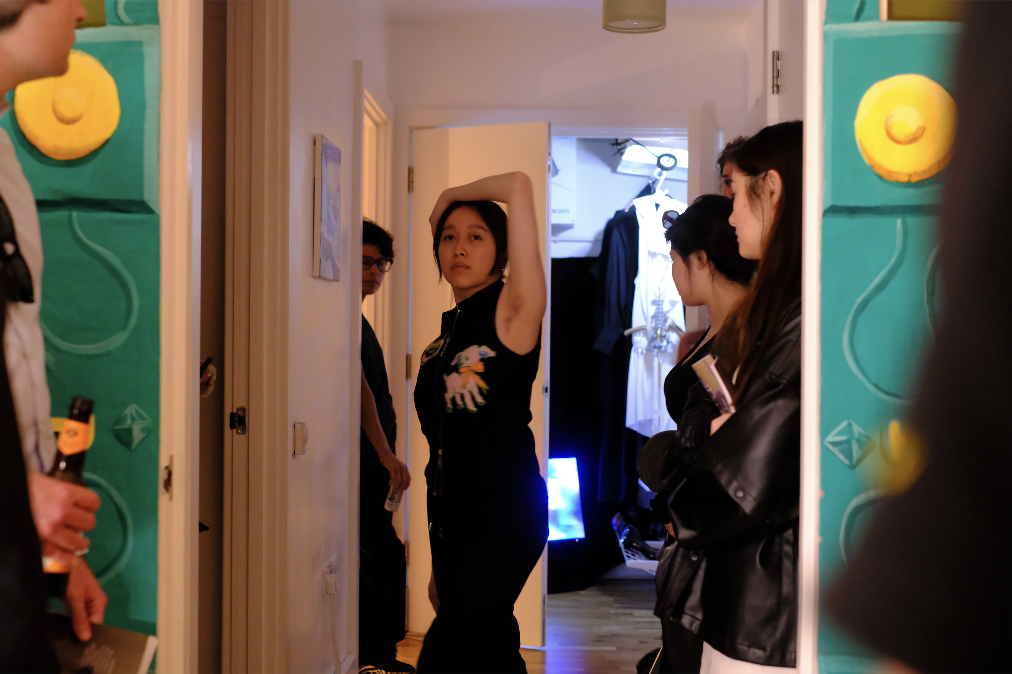 Referencing the ancient mnemonic technique of the memory palace, Memory Palace Halls transforms the act of mentally walking through a familiar environment into a physical choreography of remembrance. Originating in the artist’s Hong Kong apartment in 2020, the performance traces pathways, mapping the topology of the home through a body that becomes both archive and cartographer. The gestures are then transposed to an outdoor sports ground and, later, to digital space in collaboration with visual designer Yichan Wang. In its 2025 iteration, the performance is re-situated in the domestic intimacy of an apartment gallery show in London, continuing its evolution across space and memory.